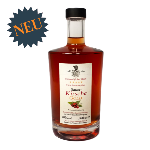 Edles hochprozentiges Sauerkirschwasser wird über frisch geerntete fruchtige Sauerkirschen gegossen und 2-3 Wochen darin eingelegt. Anschießend auf Trinkstärke gesetzt und schonend gefiltert.